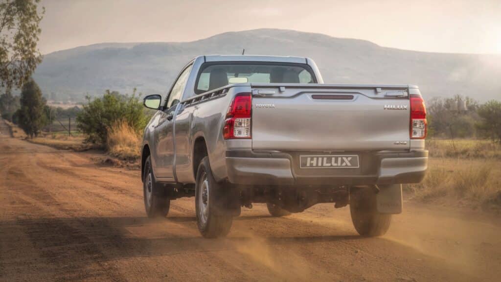 The Hilux Single Cab boasts a rugged and robust exterior that is designed to make a statement. The bold front grille, sleek LED headlights, and muscular body lines highlight its capability and toughness. Whether on a construction site or an off-road trail, the Hilux Single Cab stands out with its strong and dependable presence.